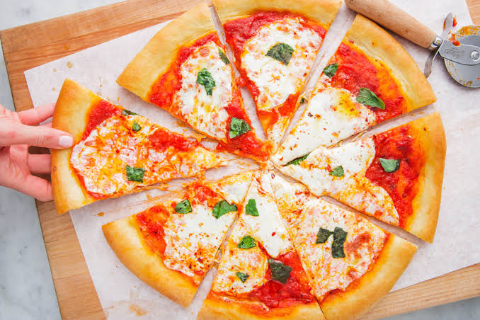 - Sprinkle semolina onto an upside down baking sheet and place the stretched crust onto it. Add the sauce and ingredients of your choice.
